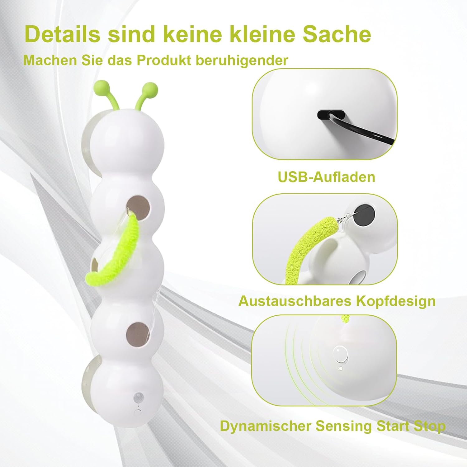 Dann ist das interaktive Raupen-Spielzeug genau das Richtige. Es kombiniert Bewegung, mentale Stimulation und jede Menge Spielspaß – und sieht dabei auch noch richtig süß aus. Ideal für Einzelkatzen, Wohnungstiger oder gelangweilte Stubentiger!